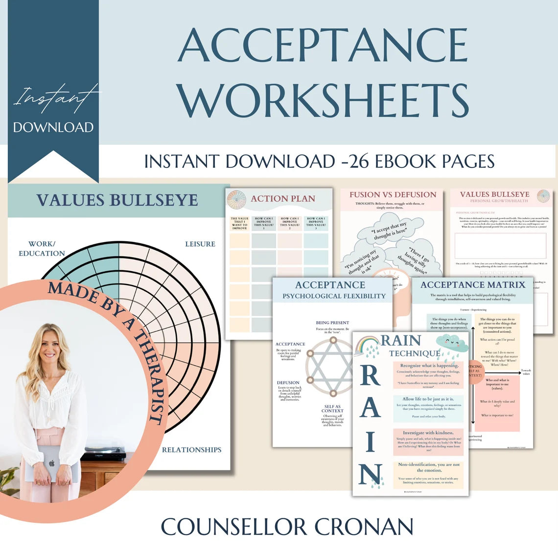 Embracing Acceptance: Therapy Worksheets - 25 sheets